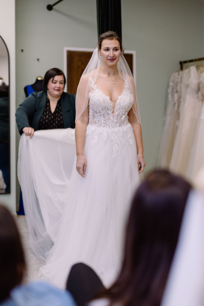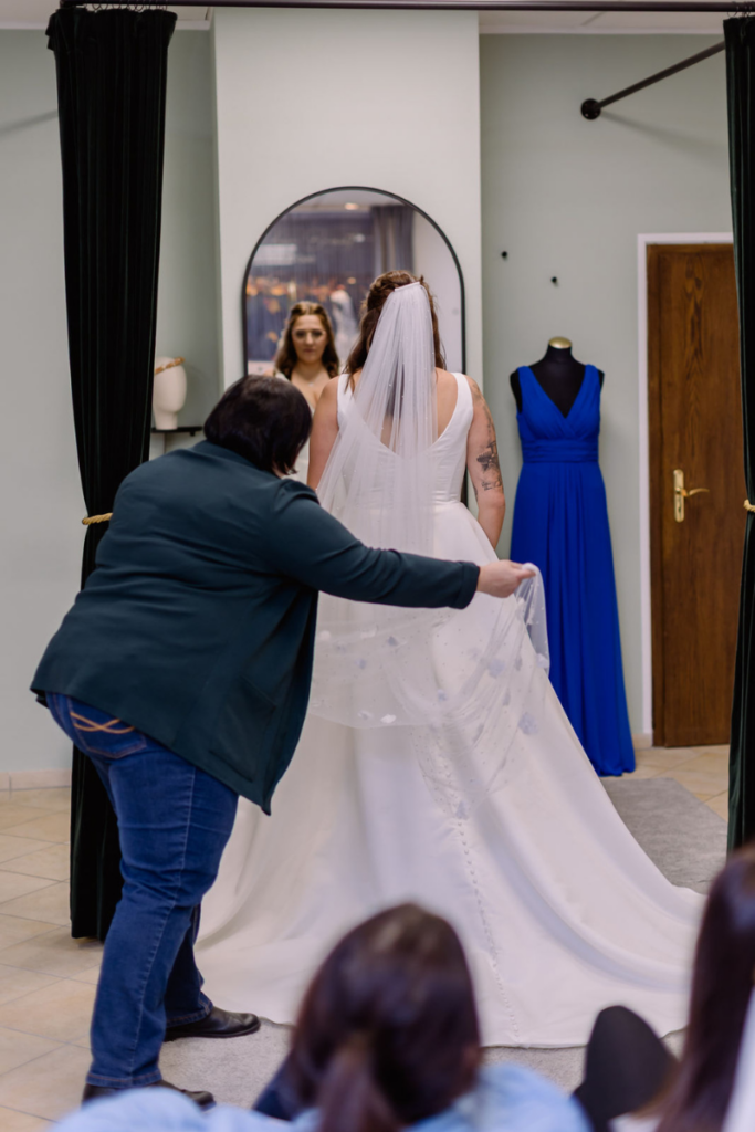 Ein zentrales Highlight der Boutique-Messe war die Modenschau, bei der ausgewählte Brautkleider live präsentiert wurden. Für viele Besucherinnen war genau dieser Moment entscheidend: Ein Kleid nicht nur zu sehen, sondern zu fühlen, zu erleben – und sich selbst als Braut darin vorzustellen.