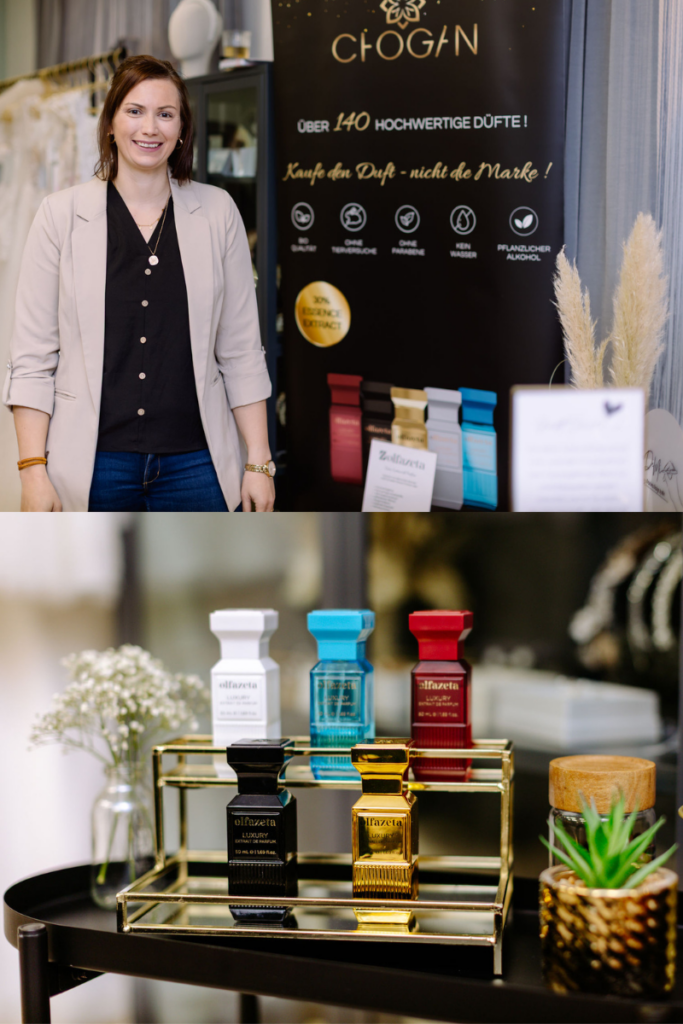Miriam Weinert von KreDeMi präsentierte eine exklusive Auswahl an Parfums, die Hochzeiten auf eine ganz besondere Weise begleiten. Denn Düfte sind eng mit Erinnerungen verknüpft – kein Detail ruft Emotionen so intensiv hervor wie der Duft des Hochzeitstages.